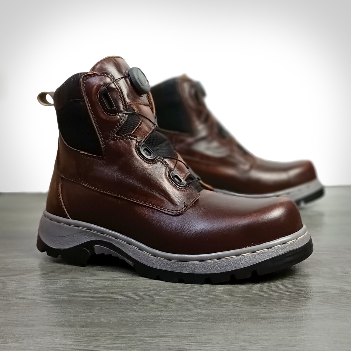 Beberapa model sepatu safety boots yang sudah kami produksi menggunakan material kulit sapi asli